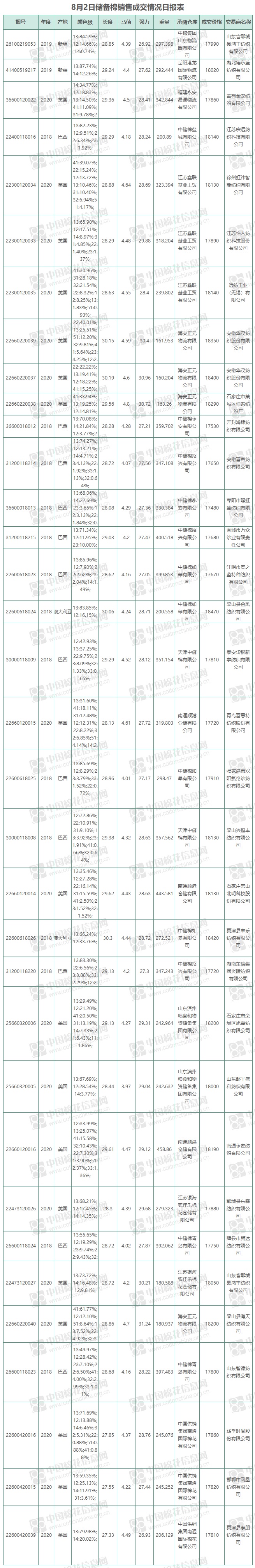 8月2日儲備棉銷售資源10000.1555噸,實際成交10000.1555噸,成交率100%,成交均價17935元/噸,較前一日下降84元/噸,折3128價格18446元/噸,較前一日下降142元/噸。