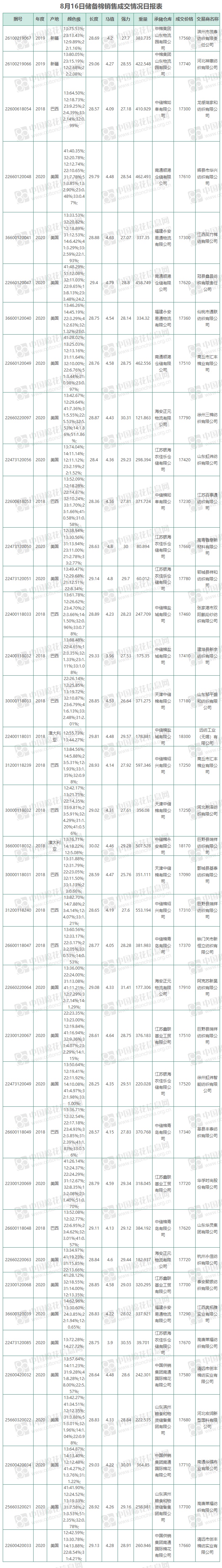 8月16日儲(chǔ)備棉銷售資源12003.013噸,實(shí)際成交12003.013噸,成交率100%,成交均價(jià)17516元/噸,較前一日跌149元/噸,折3128價(jià)格18018元/噸,較前一日跌150元/噸。