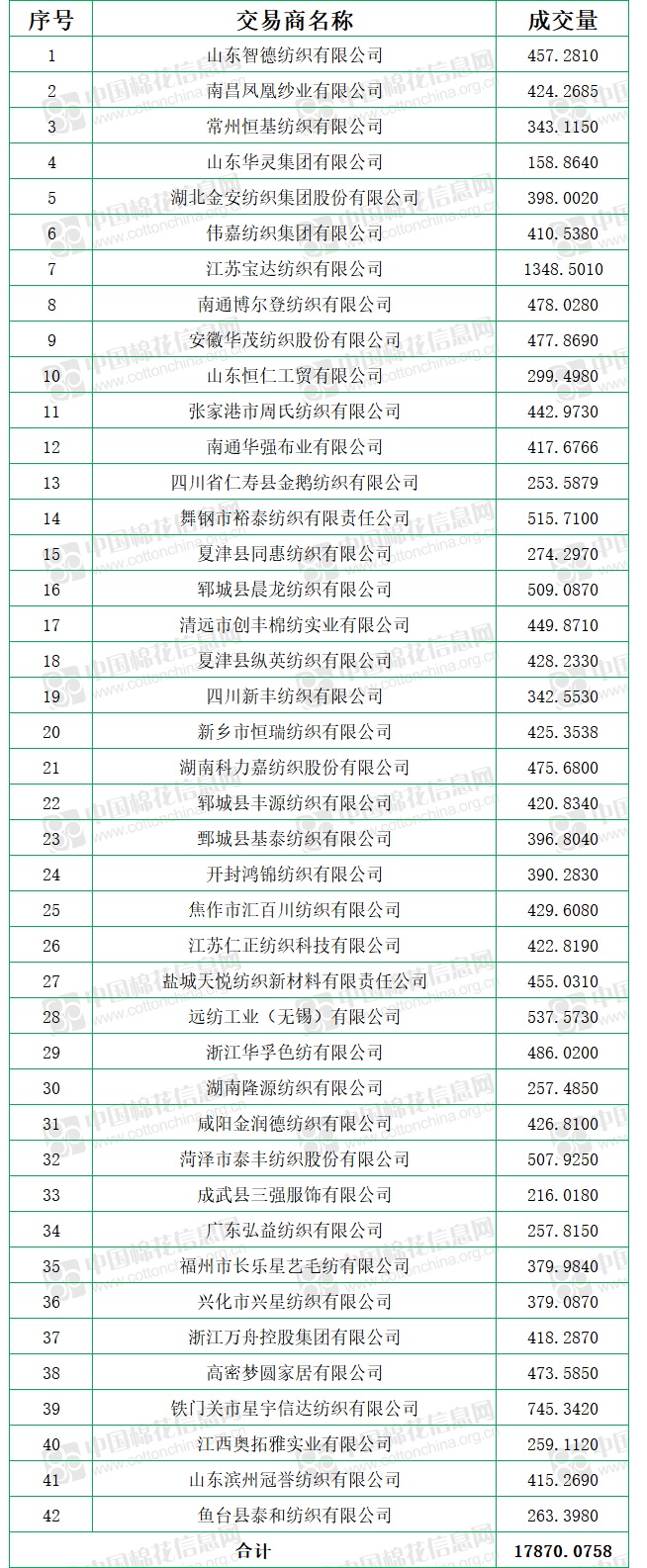 有42家企業(yè)參與交易,競買成交企業(yè)公示如下: