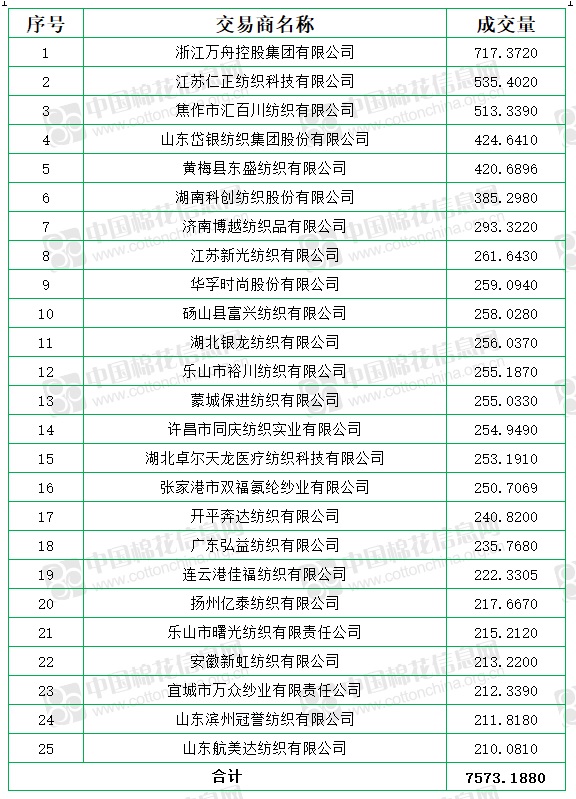 新疆棉成交均價(jià)16637元/噸,較前一日上漲54元/噸,新疆棉折3128價(jià)格17253元/噸,較前一日上漲7元/噸,新疆棉平均加價(jià)幅度52元/噸。
