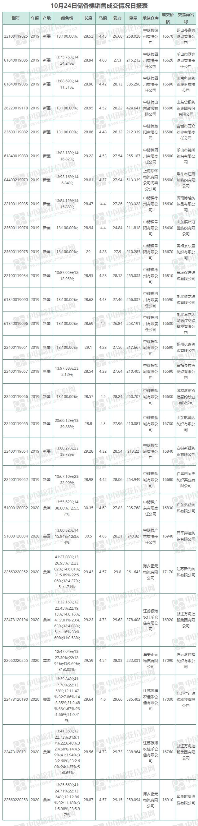 10月24日儲(chǔ)備棉銷(xiāo)售資源20002.4098噸,實(shí)際成交7573.188噸,成交率37.86%,成交均價(jià)16741元/噸,較前一日上漲128元/噸,折3128價(jià)格17279元/噸,較前一日上漲1元/噸。