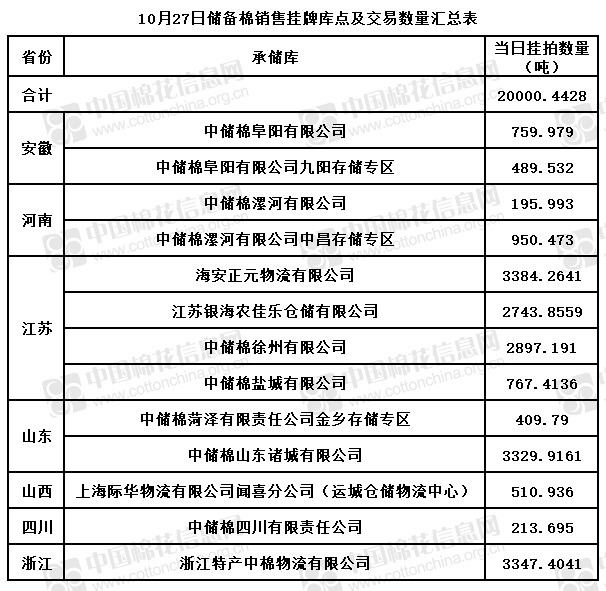 2、10月27日上市銷售儲(chǔ)備棉數(shù)據(jù)明細(xì)表(新疆棉)
