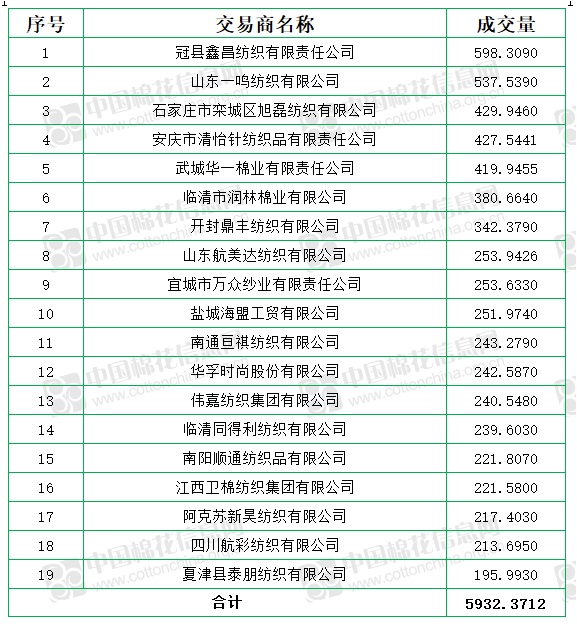 10月27日儲備棉銷售資源20000.4428噸,實際成交5932.3712噸,成交29.66%,成交均價16829元/噸,較前一日上漲167元/噸,折3128價格17245元/噸,較前一日上漲4元/噸。