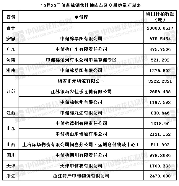 附件:1、10月30日上市銷售儲備棉數(shù)據(jù)明細表(進口棉)