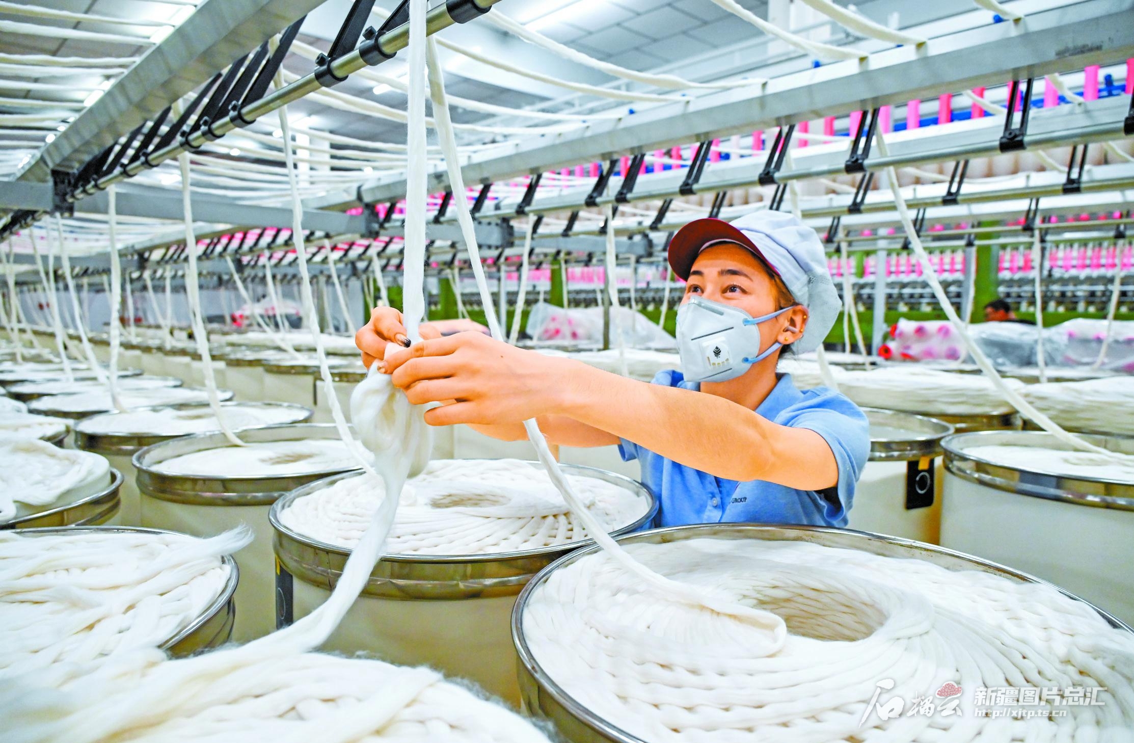 11月9日,工人在昌吉溢達(dá)紡織有限公司智能車間作業(yè)。該公司打造的智能車間從梳棉到絡(luò)筒等8道工序?qū)崿F(xiàn)數(shù)字化、智能化生產(chǎn),生產(chǎn)效率全面提升。今年,公司還啟動(dòng)“5G+”工業(yè)互聯(lián)網(wǎng)項(xiàng)目,實(shí)現(xiàn)設(shè)備互聯(lián)、人機(jī)互聯(lián),走出一條數(shù)字賦能產(chǎn)業(yè)發(fā)展的新路徑。