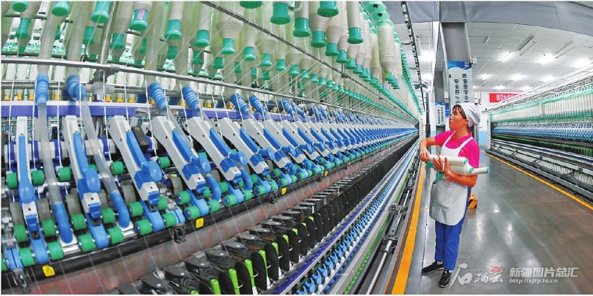 近日,工人在位于克孜勒蘇柯爾克孜自治州江蘇產(chǎn)業(yè)園的克州潤(rùn)華紡織科技有限公司生產(chǎn)車間作業(yè)??酥萁K產(chǎn)業(yè)園主要引進(jìn)裝備制造、紡織服裝、建材加工等產(chǎn)業(yè),已成為帶動(dòng)當(dāng)?shù)厝罕娋徒偷鼐蜆I(yè)、推動(dòng)克州經(jīng)濟(jì)高質(zhì)量發(fā)展的新引擎。