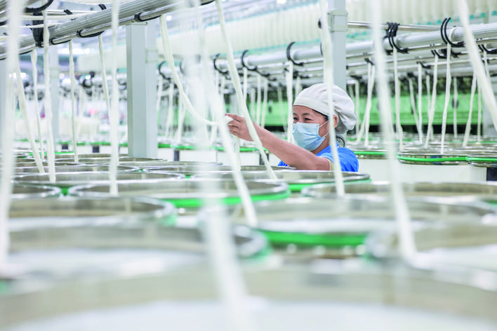 1月19日,庫車利華紡織有限公司工人在車間忙碌。該公司于2021年10月開工建設(shè),1期項目2023年11月相繼投產(chǎn),帶動周邊群眾就業(yè)。新的一年,公司開足馬力忙生產(chǎn),爭分奪秒趕訂單。