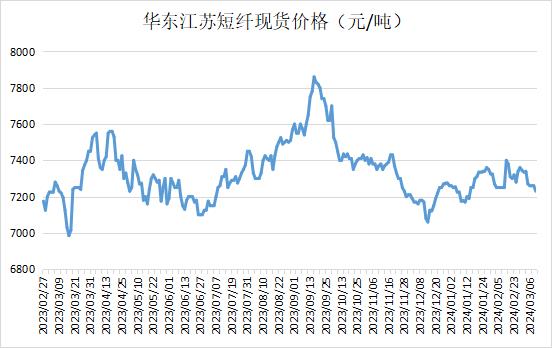 江蘇滌綸短纖現(xiàn)貨價格上漲20元在7260元/噸自提;目前工廠出廠價7400元/噸附近自提,貿(mào)易現(xiàn)貨一口價商談漲至7220-7230元/噸附近自提,基差05-50到-40。