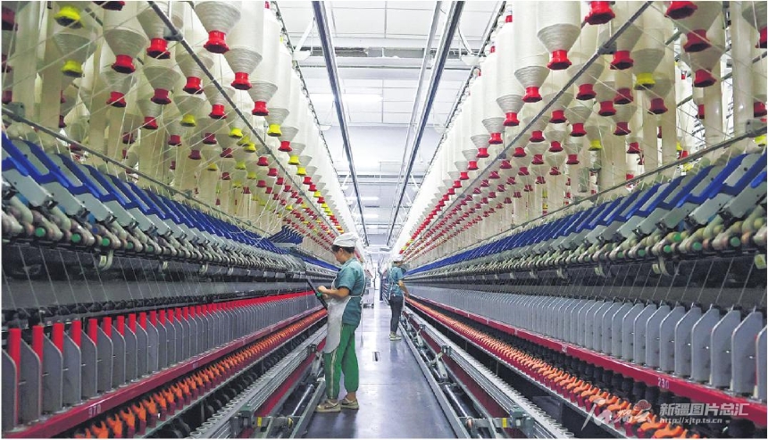 員工在烏什華盛紡織有限公司生產(chǎn)車間作業(yè)(4月2日攝)。該公司是烏什縣重點招商引資項目,年產(chǎn)值達(dá)4億元,帶動當(dāng)?shù)?00人就業(yè)。近年來,烏什縣通過建設(shè)產(chǎn)業(yè)園區(qū)、引進(jìn)大型紡織企業(yè),大力發(fā)展紡織產(chǎn)業(yè),帶動群眾在家門口就業(yè)增收。