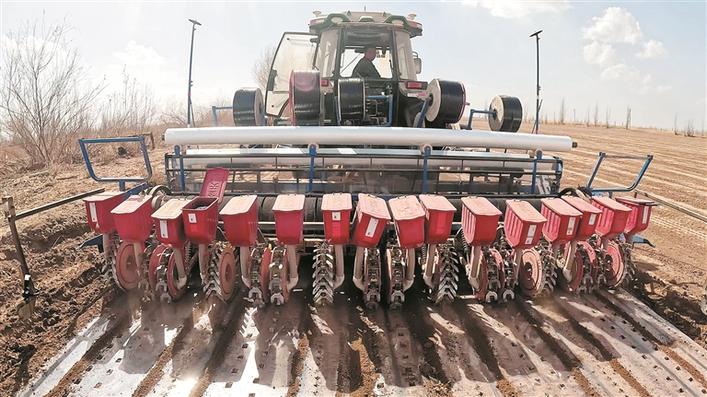 三師圖木舒克市地處塔克拉瑪干沙漠邊緣,氣候干旱,土壤鹽堿化嚴(yán)重。近年來,隨著鹽堿地改良技術(shù)的推廣應(yīng)用和農(nóng)業(yè)機(jī)械設(shè)備的不斷更新升級(jí),讓“干播濕出”技術(shù)在三師圖木舒克市得以大展身手。