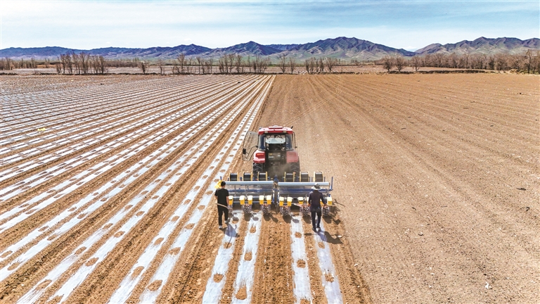 4月11日,在呼圖壁縣大豐鎮(zhèn)聯(lián)豐村的棉田里,一臺棉花播種機(jī)在北斗衛(wèi)星導(dǎo)航系統(tǒng)的精準(zhǔn)定位下,全程機(jī)械化作業(yè),田間地頭一派繁忙景象。今年,呼圖壁縣計劃種植棉花40萬畝,全縣各鄉(xiāng)鎮(zhèn)積極組織種植戶搶抓農(nóng)時播種棉花。為全力保障棉花播種工作高質(zhì)量有序推進(jìn),當(dāng)?shù)剞r(nóng)業(yè)農(nóng)村部門還選派專業(yè)技術(shù)人員,深入田間地頭,對棉花播種工作進(jìn)行全程指導(dǎo)服務(wù)。