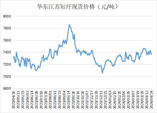 江蘇滌綸短纖現(xiàn)貨價(jià)格穩(wěn)定在7360元/噸自提;目前工廠出廠價(jià)穩(wěn)定在7400-7500元/噸自提,貿(mào)易商現(xiàn)貨一口價(jià)7320-7390元/噸自提;基差在06-50到06-30附近。