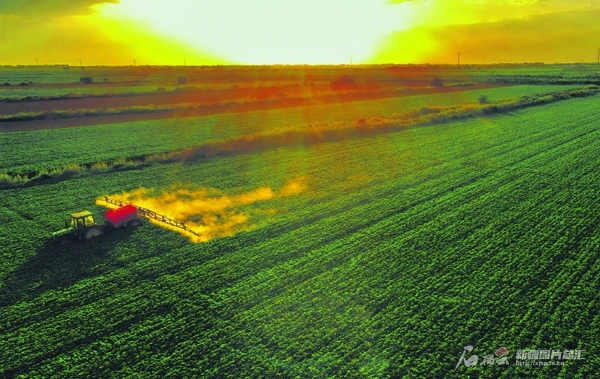 7月23日,棉農(nóng)駕駛拖拉機(jī)在克拉瑪依市克拉瑪依區(qū)小拐鄉(xiāng)的棉田里進(jìn)行噴灑農(nóng)藥作業(yè)。眼下正值棉花夏季田管關(guān)鍵期,棉農(nóng)搶抓農(nóng)時(shí),利用大型拖拉機(jī)、植保無人機(jī)開展病蟲害防治,確保棉花增產(chǎn)增收。