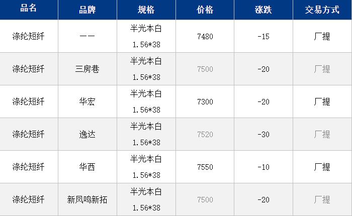 江蘇滌綸短纖現(xiàn)貨價格下跌15元在7480元/噸。上午PF期現(xiàn)貨偏弱震蕩,目前工廠價格7600元/噸附近自提,貿(mào)易商一口價7460-7500元/噸自提;基差方面,主流品牌10+200附近。