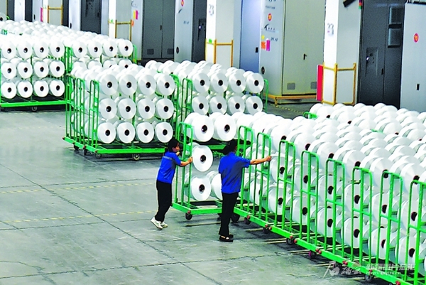8月20日,工人在位于阿克蘇阿拉爾高新技術(shù)產(chǎn)業(yè)開發(fā)區(qū)的新疆宇欣新材料有限公司生產(chǎn)車間作業(yè)。