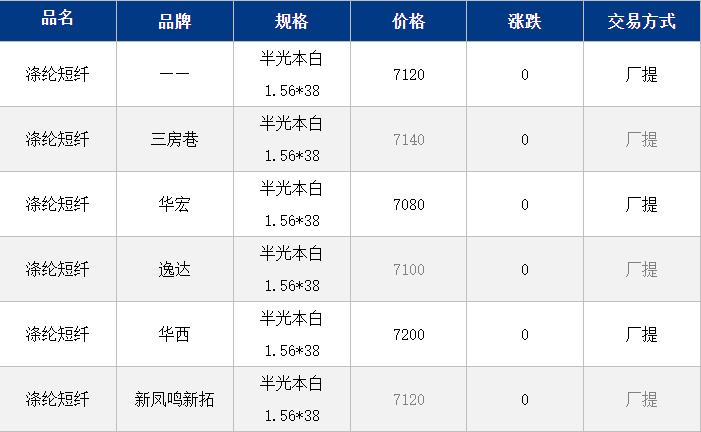江蘇滌綸短纖現(xiàn)貨價(jià)格穩(wěn)定在7120元/噸;原油跌幅較大,但近期政策利好推動(dòng)下,聚酯相對抗跌,短纖現(xiàn)貨價(jià)格基本穩(wěn)定;目前工廠價(jià)格7200-7250元/噸自提,夜盤至今貿(mào)易商一口價(jià)7120-7170元/噸自提,偏低7080元/噸。