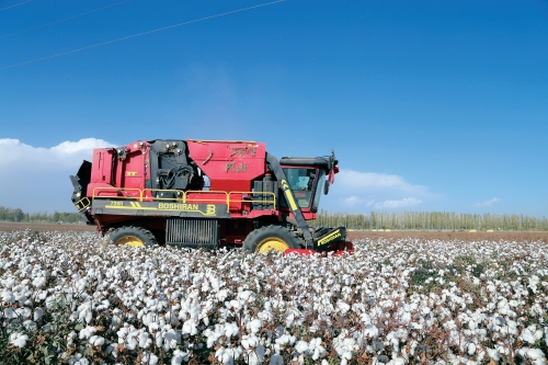 近日,在新疆阿瓦提縣阿依巴格鎮(zhèn)幸福村,采棉機在棉田里來回穿梭采收棉花。眼下,阿瓦提縣種植的130萬畝棉花陸續(xù)進入采收期,棉農(nóng)搶抓晴好天氣利用采棉機采收棉花,確保朵絮歸倉。