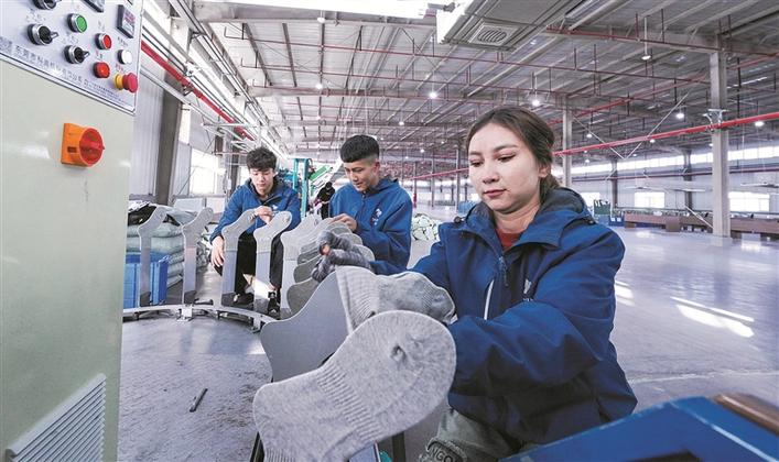 11月5日,在新疆唐錦紡織有限公司生產(chǎn)車間,工人在棉襪生產(chǎn)線上忙碌作業(yè)。該公司是三師圖木舒克市重點(diǎn)招商引資企業(yè),目前擁有7500多臺(tái)襪機(jī),日產(chǎn)中高檔棉襪200萬(wàn)雙。今年以來(lái),該公司緊盯市場(chǎng)需求優(yōu)化產(chǎn)品結(jié)構(gòu),持續(xù)擴(kuò)大產(chǎn)品市場(chǎng)份額,預(yù)計(jì)全年實(shí)現(xiàn)產(chǎn)值5億元。