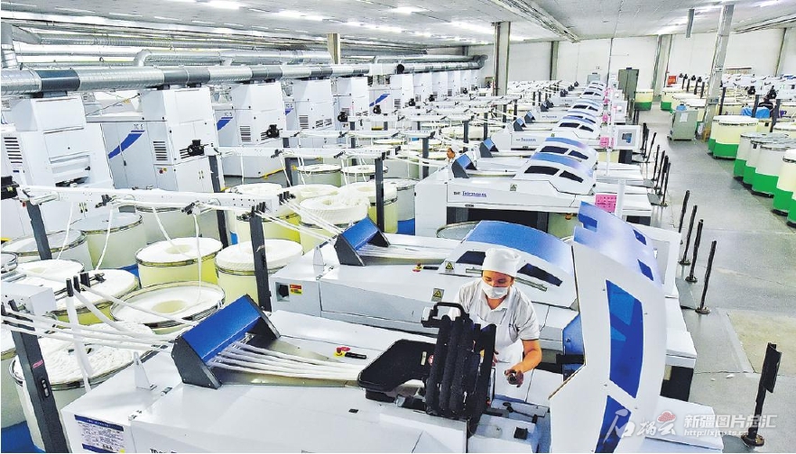 12月11日,工人在庫爾勒經(jīng)濟技術(shù)開發(fā)區(qū)一家紡織企業(yè)車間作業(yè)。庫爾勒經(jīng)濟技術(shù)開發(fā)區(qū)不斷完善紡織服裝產(chǎn)業(yè)鏈,目前已擁有13家規(guī)模以上紡織服裝企業(yè),紡織服裝產(chǎn)業(yè)已成開發(fā)區(qū)重要經(jīng)濟增長點。