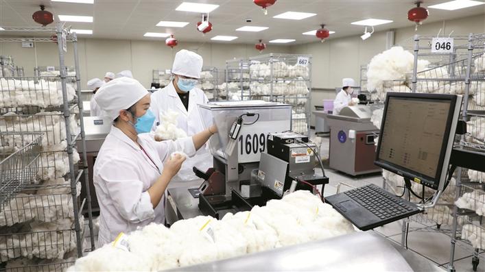 1月5日,在中國棉花公證檢驗阿拉爾實驗室,工作人員通過大容量棉花纖維檢測儀(HVI)進行棉花樣品指標檢測。該實驗室自2024年10月開檢以來,已檢驗棉花8683批160余萬包,檢驗總量達36萬噸。
