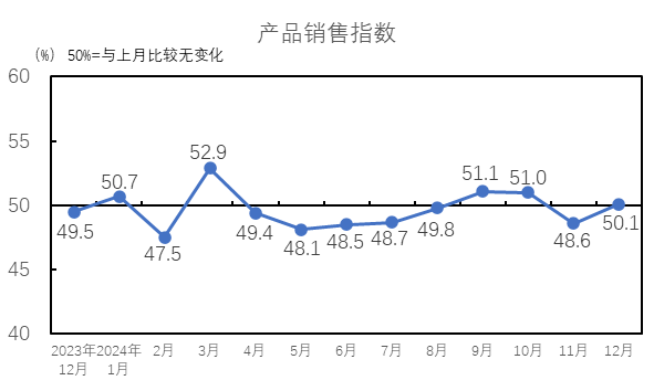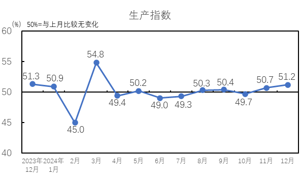 中國經(jīng)濟(jì)景氣水平延續(xù)回升向好態(tài)勢。國家統(tǒng)計(jì)局服務(wù)業(yè)調(diào)查中心和中國物流與采購聯(lián)合會發(fā)布的2024年12月中國制造業(yè)采購經(jīng)理指數(shù)為50.1%,較上月下降0.2個(gè)百分點(diǎn),保持?jǐn)U張區(qū)間。12月,宏觀政策組合效應(yīng)繼續(xù)顯現(xiàn),制造業(yè)PMI連續(xù)3個(gè)月保持在臨界點(diǎn)以上,企業(yè)生產(chǎn)經(jīng)營活動(dòng)加快,我國經(jīng)濟(jì)景氣水平延續(xù)回升向好態(tài)勢。