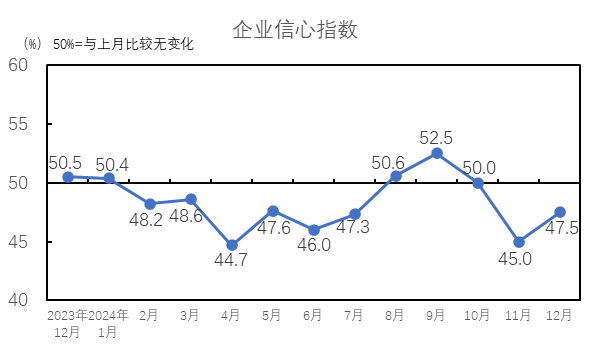 2024年12月,企業(yè)信心指數(shù)為47.5%,較11月上升2.5個(gè)百分點(diǎn),企業(yè)信心指數(shù)低于臨界點(diǎn),對未來市場的信心較11月回落。12月,市場預(yù)期的節(jié)前備貨行情整體情況較弱,雖對企業(yè)經(jīng)營情況有所改善,但仍不及預(yù)期,且美國政府將要采取的加征關(guān)稅措施給行業(yè)帶來新的不確定性,企業(yè)對未來市場多持謹(jǐn)慎觀望態(tài)度。