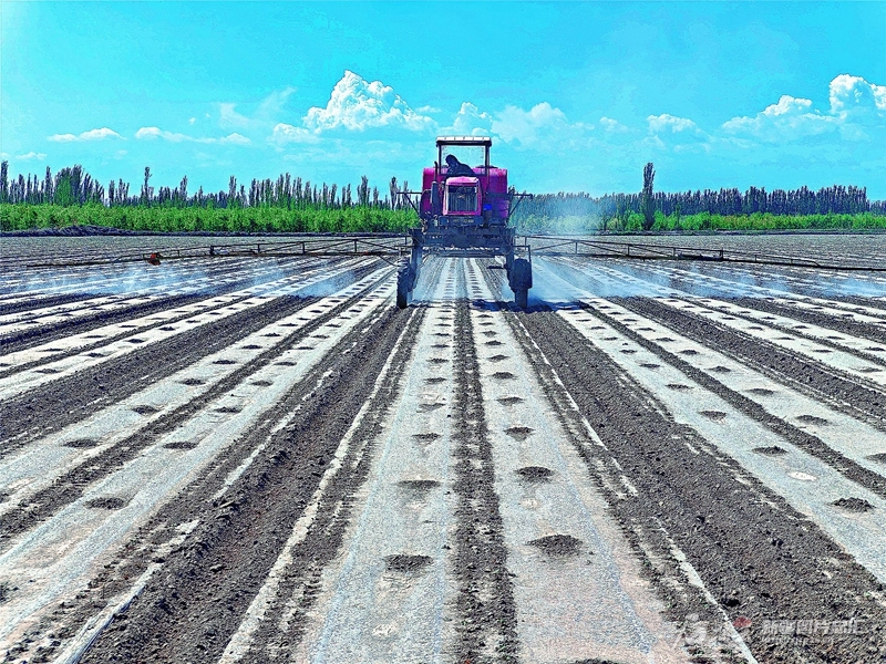 4月25日,棉農(nóng)駕駛拖拉機(jī)在阿瓦提縣塔木托格拉克鎮(zhèn)阿克亞村的棉田里噴灑農(nóng)藥。今年,阿瓦提縣種植棉花140萬(wàn)畝,當(dāng)?shù)孛揶r(nóng)搶抓農(nóng)時(shí)管護(hù)棉花,確保豐產(chǎn)增收。