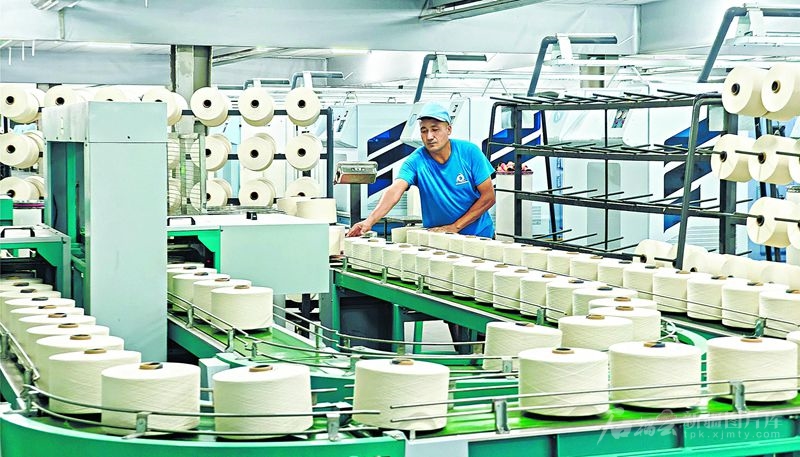 7月16日,工人在位于阿瓦提縣的新疆精一紡織科技有限責(zé)任公司車間作業(yè)。連日來,該公司開足馬力忙生產(chǎn),紡紗產(chǎn)品將銷往浙江、廣東等地。