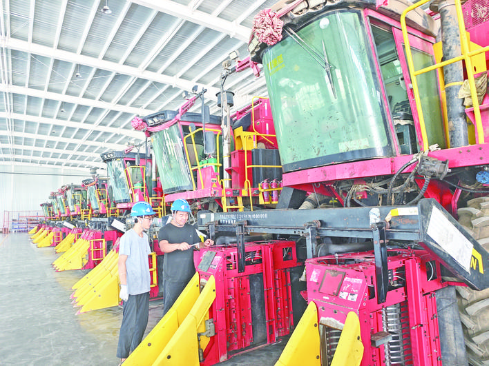 8月1日,在阿瓦提縣阿瓦提鎮(zhèn)團(tuán)結(jié)村,農(nóng)機(jī)專家正在檢修采棉機(jī)。近期,阿瓦提縣組織科技特派員、農(nóng)機(jī)專家進(jìn)村入戶,為棉農(nóng)提供農(nóng)業(yè)技能培訓(xùn)、采棉機(jī)檢修等服務(wù),確保棉花順利采收。