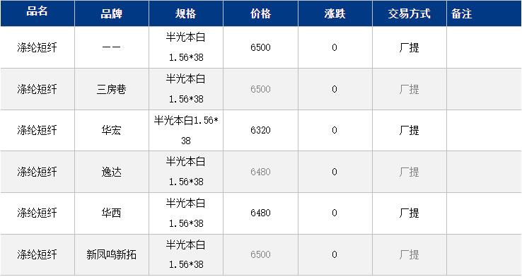 1.4D半光直紡滌綸短纖江浙商談重心6350-6700元/噸出廠或短送,福建主流商談6350-6550元/噸現(xiàn)款短送,山東、河北主流6450-6750元/噸送到。