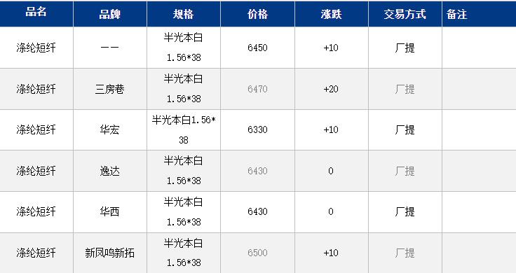 江蘇滌綸短纖現(xiàn)貨價格上漲10元到6450元/噸。成本端價格呈漲勢,周初江蘇滌綸短纖報價小幅跟漲。目前現(xiàn)貨主流6430-6500元/噸自提,偏低6330元/噸附近自提。