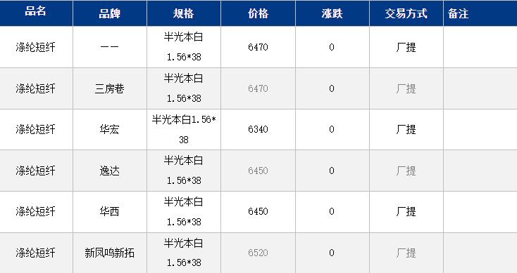 1.4D半光滌綸短纖主流商談6400~6700元/噸。