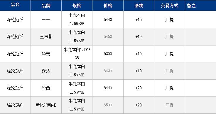 江蘇滌綸短纖現(xiàn)貨價格上漲15元到6440元/噸。日內短纖期貨震蕩整理,波動有限,現(xiàn)貨價格部分低價貨源略有小漲,整體波動不大;目前短纖現(xiàn)貨主流6420-6500元/噸自提,偏低6300元/噸附近自提。