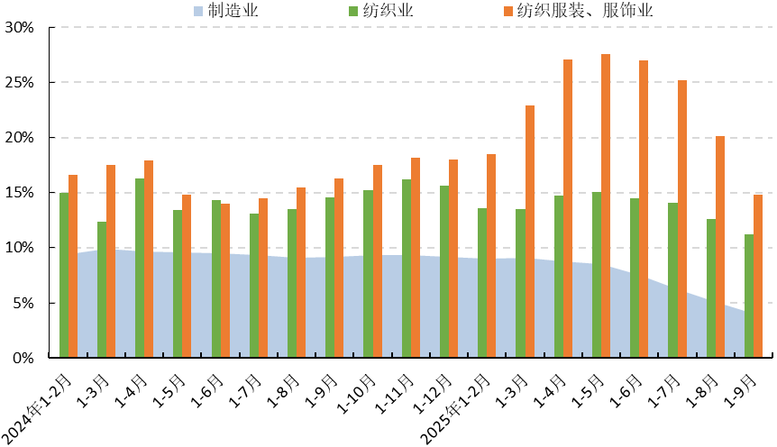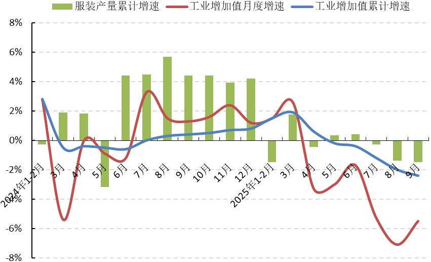 圖1 2025年1-9月服裝行業(yè)生產(chǎn)增速情況