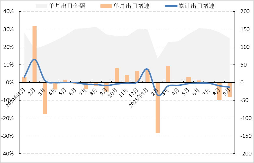 圖3 2025年1-9月我國服裝及衣著附件出口情況