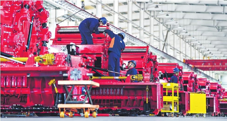 11月12日,工人在位于烏蘇市的新疆缽施然智能農(nóng)機股份有限公司生產(chǎn)車間組裝棉花秸稈收獲打包機。該公司是一家集研發(fā)、生產(chǎn)、銷售和服務為一體的現(xiàn)代化智能農(nóng)機制造企業(yè),產(chǎn)品熱銷國內(nèi)外市場。