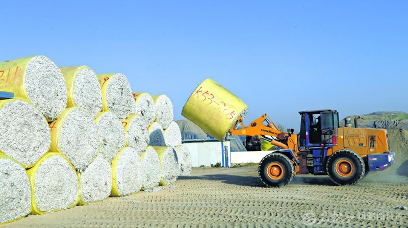 11月14日,阿瓦提縣塔木托格拉克鎮(zhèn)一家軋花廠的工人在碼放棉花。連日來(lái),該縣各鄉(xiāng)鎮(zhèn)軋花廠搶抓時(shí)機(jī),加緊收購(gòu)新棉,確保朵絮歸倉(cāng),高效加工。