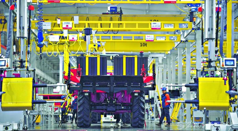 12月2日,工人在新疆缽施然智能農(nóng)機股份有限公司生產(chǎn)線上組裝采棉機。今年,該公司采棉機銷售量持續(xù)增長,國外訂單實現(xiàn)穩(wěn)定上升,產(chǎn)品銷往烏茲別克斯坦、哈薩克斯坦、阿塞拜疆等國。