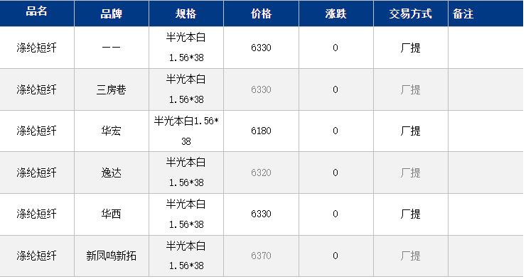 山東、河北直紡滌綸短纖商談走貨,1.4D半光主流6300-6550送到,下游按需采購。