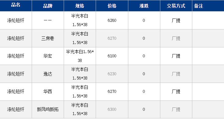 江蘇滌綸短纖現(xiàn)貨價(jià)格暫時(shí)穩(wěn)定在6260元/噸;早間短纖期現(xiàn)貨橫盤整理,波動(dòng)不大;目前江蘇主流6250-6310元/噸自提,偏低6100元/噸附近自提。