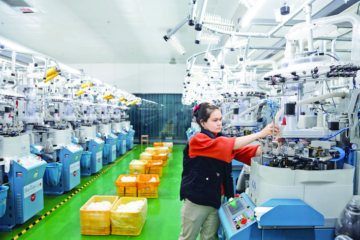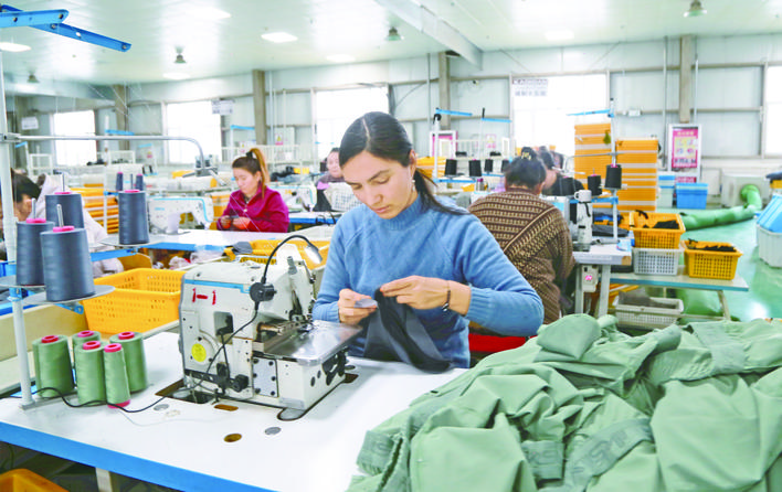 12月22日,阿瓦提縣一紡織廠車間里,工人正加緊趕制200萬雙襪子和2萬套服裝訂單,銷往浙江、廣東等地,及時滿足市場需求。