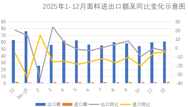 2025年1-12月紡織品出口帶動(dòng)紡織服裝出口