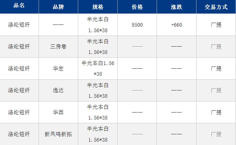 江蘇滌綸短纖現(xiàn)貨價(jià)格上漲660元到8500元/噸附近;石化減產(chǎn)波及原料,聚酯系期貨盤中觸及漲停,現(xiàn)貨價(jià)格被動(dòng)跟漲。