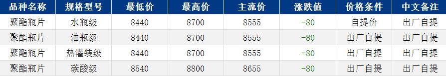 華東聚酯瓶片收于8555元/噸,漲跌值-80元/噸,外圍消息發(fā)酵,能化品全線回調(diào),成本支撐坍塌,聚酯瓶片工廠報價多下調(diào)200元/噸。然而現(xiàn)貨資源略緊,市場價格較原料相對抗跌,4月貨源報盤8440-8700元/噸或期貨合約2605升水300-400,局部略低8200-8240元/噸或2605升水50。缺少明確方向指導,暫無實單遞盤,謹慎觀望為主。