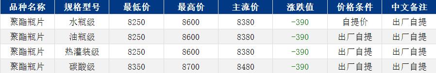 華東聚酯瓶片收于8380元/噸,漲跌值-390元/噸,美伊和談消息影響,原油跳水。拖累能化產(chǎn)品價(jià)格下滑,聚酯瓶片隨之下調(diào)。4月貨源報(bào)盤(pán)8250-8600元/噸或期貨合約2506升水300-400,部分略低8000-8300元/噸或2605升水80,遞盤(pán)8200-8350元/噸。地緣風(fēng)險(xiǎn)溢價(jià)部分回吐,由于現(xiàn)貨流通緊張,聚酯瓶片跌幅小于原料端。