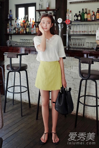 白色T恤寬松休閑設(shè)計(jì),領(lǐng)口用精美的蕾絲裝飾,增添精致浪漫的感覺,搭配黃色A字裙清新甜美,穿出活潑靚麗的感覺,整個(gè)人看著也輕盈靈動(dòng)。