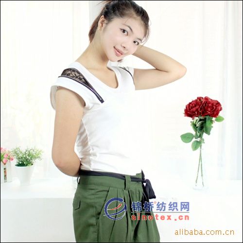 日韓女式蕾絲拼接圓領(lǐng)t