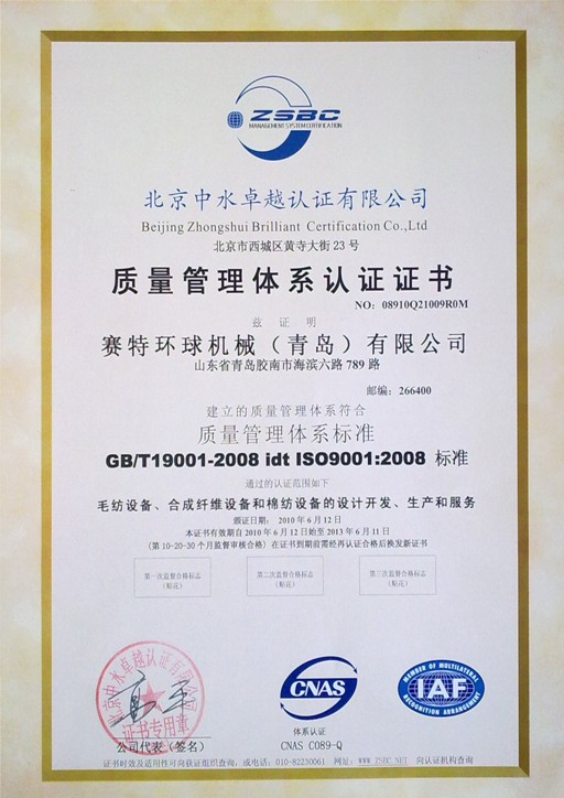 質(zhì)量認(rèn)證證書.